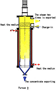重組份(高沸點(diǎn))沿著加熱面以螺旋型軌道流向蒸發(fā)器底部(大約幾秒)從出口排出。